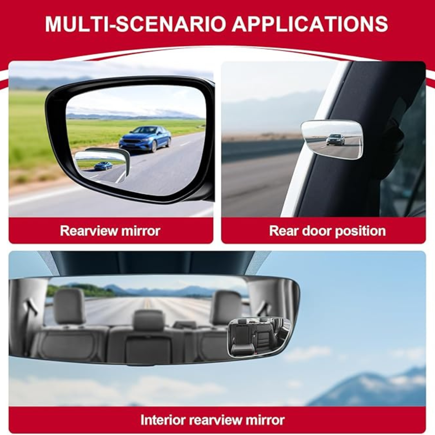 - Frameless Ultra-Thin Design: A sleek, aesthetic look that blends seamlessly with your vehicle's existing side mirrors without obstructing the original reflection.